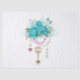 Antique gold key with trendy turquoise roses decorated with leaves of white gold and pink and blue beads. Fashionable colour. Turquoise roses. White gold. Blue tiffany.