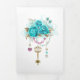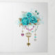Antique gold key with trendy turquoise roses decorated with leaves of white gold and pink and blue beads. Fashionable colour. Turquoise roses. White gold. Blue tiffany.