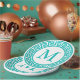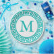 Turquoise Round Greek Key Border Monogram Paper Plate