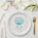 Perfect for a nautical themed wedding is this Rustic Seashell Wedding Paper Plates with a turquoise seashell on a light beige marble look background. These classic and simple beach wedding plates are easy to customise with your wedding details. Find more personalisation options by clicking Customise.