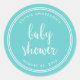 Turquoise Script and White Stripes Baby Shower Classic Round Sticker