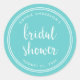Turquoise Script and White Stripes Bridal Shower Classic Round Sticker