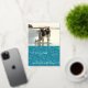 Turquoise ocean blue teal with silver hand-written look lettering and soft bokeh bubbles background, add your family photo to this crisp, Classy and elegant fancy script text "merry" Christmas. Greet your family and friends with class and sophistication this holiday season with this stylish flat greeting card.