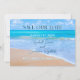Tropical beach background save the dates. Modern text over a beautiful scene of sea and sand. Simple and effective coastal destination marriage announcements.