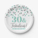 30 and fabulous birthday party plates with turquoise and silver glitter pattern confetti.