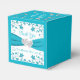 This personalised and romantic wedding favour box is perfect to use at your wedding reception, bridal shower, or rehearsal dinner. These white and turquoise or teal blue floral wedding favour boxes are sure to be a memorable hit with your guests with whatever sweet treat you put inside. The square favour box has a turquoise blue all-over background colour except the front and back sides that are white with a turquoise blue ribbon and joined hearts image across the centres with silver flowers on the top lid with customisable wording that says, "Love is Sweet" and also has the name of the bride and groom and the wedding date. The front and back sides have turquoise blue flowers and vines above and below the ribbon with the words, "Thank You!" printed above the ribbon in blue in the same script font that is used on all the matching pieces of the wedding set. Below the ribbon, the words, "Two Hearts, One Love" are printed in blue below the joined hearts image. If you need any other matching items, please email niteowlstudio@gmail.com and watch your spam/junk folders for my reply, or use the Zazzle chat feature to contact me.