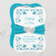 If you've found the love of your life and want to invite all your family and friends to witness the joining of your two lives and hearts then this lovely bracket-shaped wedding invitation in turquoise blue, white, and silver with joined hearts over a teal or turquoise blue ribbon image running across the centre is sure to get everyone's attention. The front side is white with turquoise blue flowers and vines with the names of the bride and groom above the hearts in turquoise. Below the hearts, is a customisable verse that says, "Two lives, two hearts, joined together by friendship, united forever in love". The backside is turquoise with the same hearts from the front at the top of the backside with silver flower and vine arches at the top with your wedding ceremony and reception details printed on in white. RSVP details are also printed in white at the bottom, making this a very affordable option for those couples on a tight budget. If you need any additional matching items, please email your request to niteowlstudio@gmail.com or use the Zazzle chat feature to get in touch.