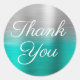 Turquoise Silver Ombre Foil Thank You Classic Round Sticker