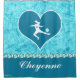 Girl's soccer shower curtain with a beautiful turquoise design. It has a teal (or turquoise) heart with a soccer player silhouette, and printed turquoise brads. (NO real brads, it's just part of the design). Add your name and number before ordering!