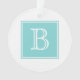 Add your initials or other text to customise this simple and modern Square Monogram Acrylic Ornament in turquoise and white. This trendy and chic ornament would make a perfect gift.