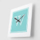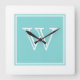 Add your initials or other text to customise this simple and modern Square Monogram Clock in turquoise and white. This trendy and chic clock would make a stylish accent on your wall.