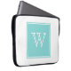 Add your initials or other text to customise this simple and modern Square Monogram Laptop Sleeve in turquoise and white. This trendy and chic case would make a perfect gift and is great for protecting your phone.