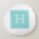 Add your initials or other text to customise this simple and modern Square Monogram Round Pillow in turquoise and white. This trendy and chic pillow would add a classic touch to any decor or make a perfect gift.