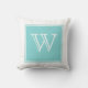 Add your initials or other text to customise this simple and modern Square Monogram Throw Pillow in turquoise and white. This trendy and chic pillow would add a classic touch to any decor or make a perfect gift.