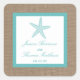 Turquoise Starfish Burlap Beach Wedding Collection Square Sticker