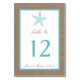 Turquoise Starfish Burlap Beach Wedding Collection Table Number