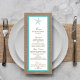 The rustic burlap effect background gives these menus a boho-chic feel, while the tropical turquoise has a fresh and cool colour scheme that can be used throughout your wedding. The cute starfish is the perfect finishing touch for any elegant beach wedding.