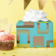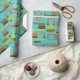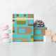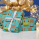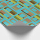 This wrapping paper has a mid-century modern design of rounded rectangles in shades of green and brown with holes in them on a field of turquoise. If you like the design but prefer different colours, message me.