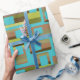 Turquoise Striped Rectangles Wrapping Paper