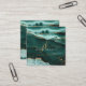 Turquoise Teal Agate Gold Glitter Script Monogram Square Business Card