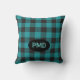 Turquoise Teal Blue Black Buffalo Plaid Monogram Cushion
