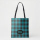 Turquoise Teal Blue Black Buffalo Plaid Monogram Tote Bag