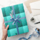 Turquoise teal geometric mesh pattern Monogram Wrapping Paper