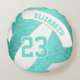 This cute volleyball pillow features a pretty teal / turquoise and white volleyball graphic that has an artsy floral kaleidoscopic pattern blended with the non-white volleyball panels - her name and jersey number are customisable - by katz_d_zynes