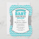 Turquoise Teal Grey Chevron Baby Shower Invitation