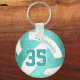 This girly volleyball keychain features a pretty turquoise to teal gradient volleyball graphic with contrasting white panels - an artsy floral kaleidoscopic pattern is blended with the coloured volleyball panels - her name and jersey number are customisable - by katz_d_zynes