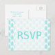 Trendy and stylish Tribal Arrows Wedding RSVP Postcard with a turquoise and white arrow pattern background. Easy to customise with your wedding details. For more customisation options, click on the Customise It button.