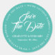 Turquoise Typography Script Wedding Save The Date Classic Round Sticker