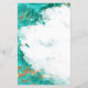 Hand painted beautiful watercolor illustration in shades of Turquoise and white with sparkling gold veining highlights has the appearance of a turquoise and marble gemstone - stationery for what ever use you like - design on both sides