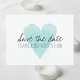 Aqua / turquoise blue watercolor heart save the date postcards for wedding. Vintage weathered love symbol with elegant script text for bride and groom names plus date. Cute romantic illustration design personalised with your message for guests. Customisable background colour ie white. Rustic country chic print for classy marriage party. Handdrawn water colour painting.
