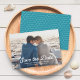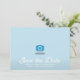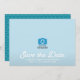 Turquoise Waves Full Photo Save the Date card has turquoise aqua waves pattern back side.