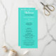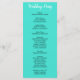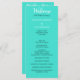 Turquoise blue background Wedding Programs with white and black text.   Personalise Wedding Programs on front and back with bride and groom's ceremony details to suit your needs.  Program cards designed for six bridesmaids and groomsmen names.  If you have a smaller wedding party simply delete extras bridesmaids and groomsmen rows not needed, and remove extra spacing inbetween headings by clicking delete button to move row up to keep uniformity spacing.  If adding more than six people to each of these, you many need to click Customise to reduce font size.  If you need help editing further, click contact this designer for help with placement.  Original template design by TamiraZDesigns.