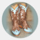 Western Cowboy boots feathered with a turquoise border are featured on this envelope seal.