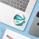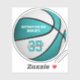 This custom basketball sticker features the realistic image of a basketball that has alternating turquoise and white recolored panels upon which you can personalise the athlete's name and jersey number plus school or club name and mascot name - by katz_d_zynes