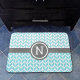 Turquoise White Chevron Pattern Monogram Grey Bold Bath Mat