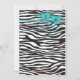 TURQUOISE WHITE COOL ZEBRA PRINT SWEET SIXTEEN INVITATION