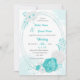 romantic turquoise and white flowers on a beautiful geometric frame wedding invitation.