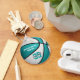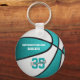 This cool basketball themed keychain features the image of a realistic basketball with alternating turquoise and white recolored panels - easily customise with school name, mascot name and player name & jersey number - by katz_d_zynes