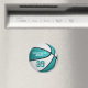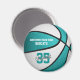 This cool basketball themed magnet features the image of a realistic basketball with alternating turquoise and white recolored panels - easily customise with school name, mascot name and player name & jersey number - by katz_d_zynes