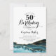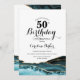 Turquoise, white and gold agate 50th birthday party invitation. Elegant modern design featuring watercolor agate marble geode background, faux glitter gold and typography script font. Trendy invite card perfect for a stylish women's bday celebration. Printed Zazzle invitations or instant download digital printable template.