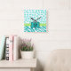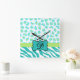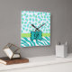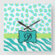 Turquoise White Green Zebra Leopard Skin Monogram Square Wall Clock