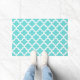 A bold turquoise and white pattern decorates this stylish doormat. The design is from original art.