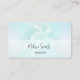 This elegant coastal business card features a white tribal turtle on a shimmering turquoise background and a custom name in an elegant hand lettered script.