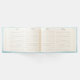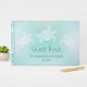 This lake house guest book feature a coastal design in soft colours, white turtles on a soft shiny turquoise background.