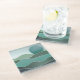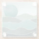 This fantasy landscape is in beautiful textured layers and shades of turquoise and aqua with a sun and hills and mountains.