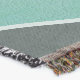 A quality printed throw has its advantages. This is a much finer weave throw than its loopier cousins, and though lighter, it is worth the investment for custom room accessorizing. The back is much prettier than the typical brown, and the fringe on the long sides very vivid, the selvage nicely done. Before photographing, I washed the throw in cold water, delicate, with a thicker woven throw the same size. On tumble dry low, this throw was dry in half the time as the other. This is a very practical quality if you use throws for furniture covers or to wrap up in frequently. The sleekness of the fabric makes it a great layer for accenting or protecting without the feeling of sitting on too much stuff. Perfect for napping or when you feel a light chill coming on. The color printing is beautiful and on this fabric, matched the design and color of my Photoshop image. This is an advantage for blending room fabrics and colors. The fringe on the short sides prints the colors from the design image and therefore varies from the side fringe. I streaked a white fractal line through the plaid pattern to give the illusion of weaving. This printed as crisp as an illusory thread, and put some white in the short side fringe, showing another advantage of print vs loomed- for artistic purposes, line lines, detail, and color integrity can be planned and preserved. My loomed throws have color limitations and more of a needlepoint texture. Print throws reproduce an exact image. The throw felt a little stiff straight out of the package, but this went away in the first delicate wash. Of course I searched the wash water for ink or bleeding and there was none.